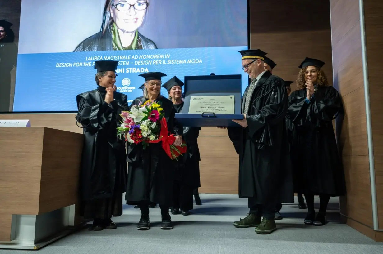 On March 27, 2024, Politecnico di Milano awarded an Honorary Master's Degree in Design for the fashion system to Nanni Strada, as an acknowledgment of the important role played by Strada in the innovation process of industrial design for fashion. This is the second Honorary Degree awarded by the Design for the Fashion System program in the last twenty years, preceded only by the one conferred to Giorgio Armani in 2007