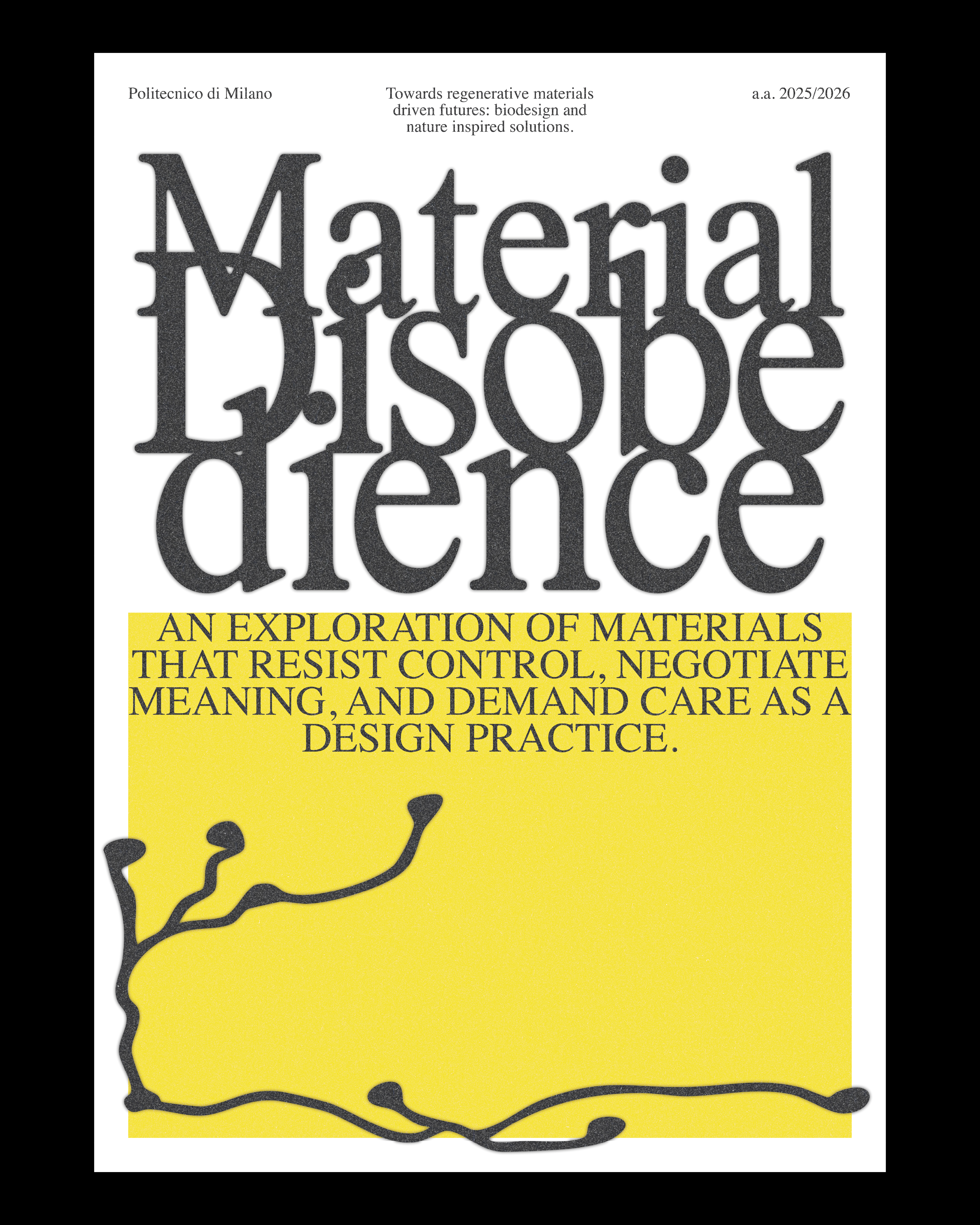 Il 13 gennaio 2026 inaugura Material Disobedience, una mostra di fine corso che presenta i progetti realizzati dagli studenti del corso elettivo “Towards Regenerative Material-Driven Futures: Biodesign and Nature-Inspired Solutions”, organizzata con la prof.ssa Valentina Rognoli e il gruppo di ricerca MaDe/Trans.