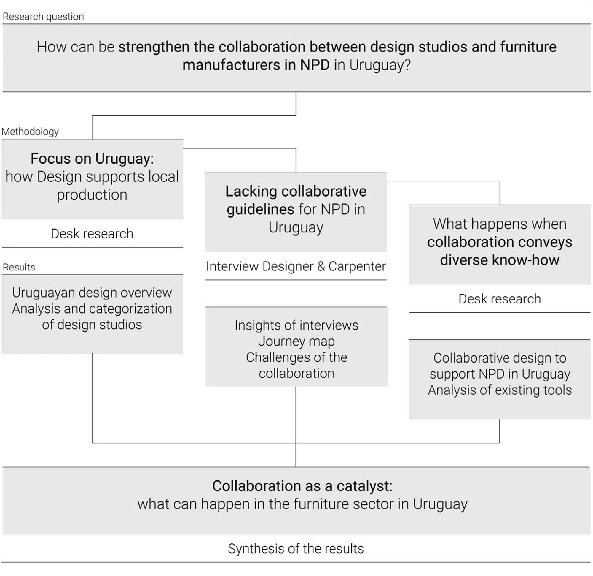 La ricerca si fonda nel contesto del panorama del design uruguaiano, e parte dalla premessa che in Uruguay, la collaborazione tra designer e aziende manifatturiere rimane limitata, principalmente a causa della storica separazione tra la sfera accademica e il settore produttivo.