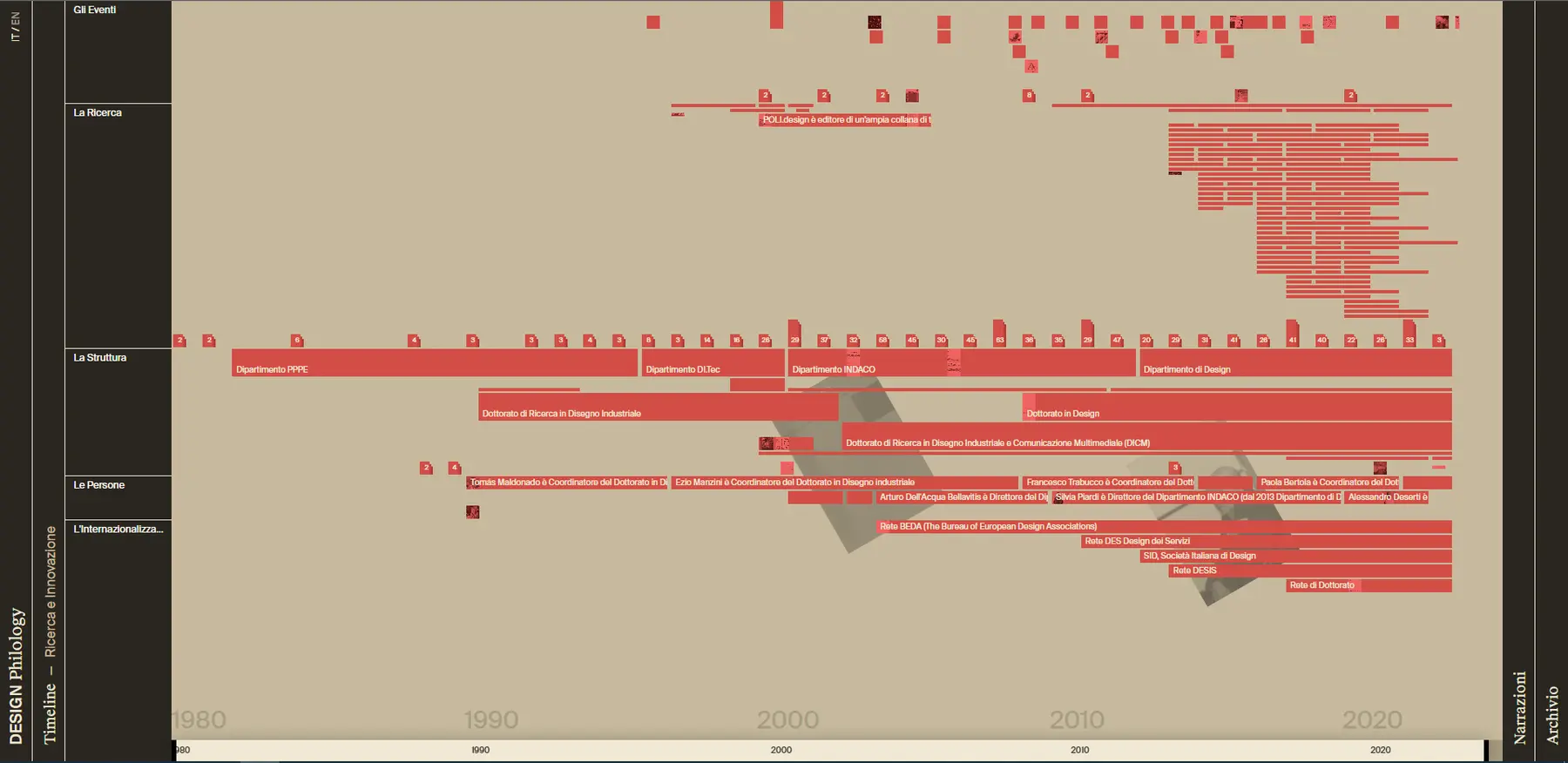 He is part of the research group in Communication Design for the Territory - DCxT, and of the research group Design and Translation - DET. Since 2011 he has been coordinator of DataInterfaces, an experimental collaboration lab between Politecnico di Milano and Fondazione ISI that combines the competences of Communication Design, Data Science, and Artificial Intelligence to address open issues in the creation of tools for the exploration and communication of complex phenomena.