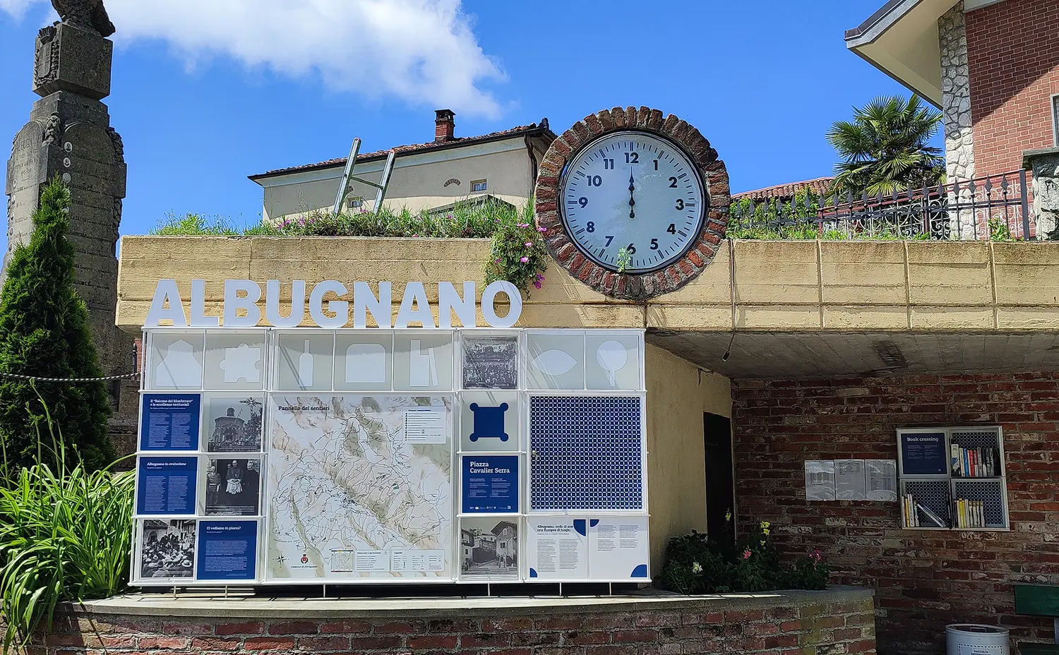 Nel dettaglio, i pannelli comunicativi – il cui impianto grafico richiama ai colori chiave del territorio – contengono: una mappa che orienta verso tutti i luoghi dell’itinerario; informazioni chiave per l’utilizzo e accesso degli spazi, orari di apertura, contatti di riferimento e rimando tramite QR code al sito del Comune con informazioni aggiuntive; dati e fotografie storiche; storie e racconti dei cittadini legati ai loro ricordi in questi luoghi, e curiosità. Completano l’opera gli spazi bacheca per la cittadinanza, utili per ospitare locandine e materiale promozionale di eventi locali.