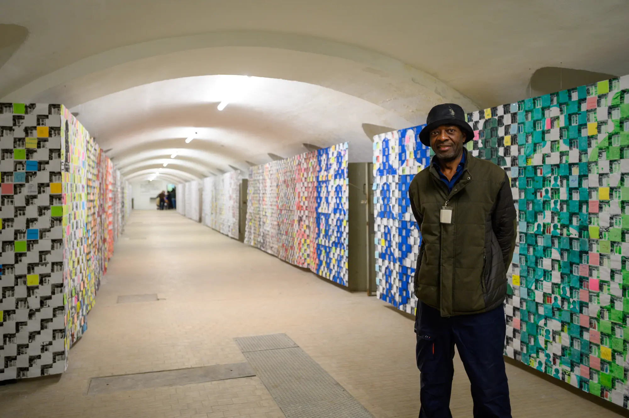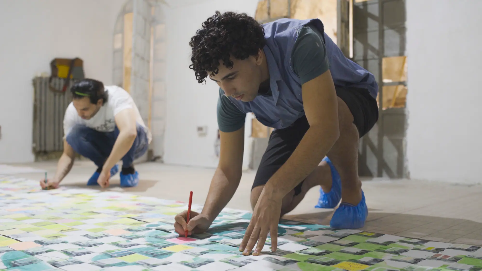 L’opera site-specific della prima edizione ReverseLab lavora sul rapporto tra interno ed esterno e tra corpo e spazio, attraverso la costruzione di un paesaggio inedito all’interno della galleria espositiva principale. Gli innumerevoli frammenti che compongono l’opera sono realizzati dalle persone detenute guidate dall’artista Maurice Pefura, con la curatela artistica di Diego Sileo (PAC Padiglione di Arte Contemporanea Milano).